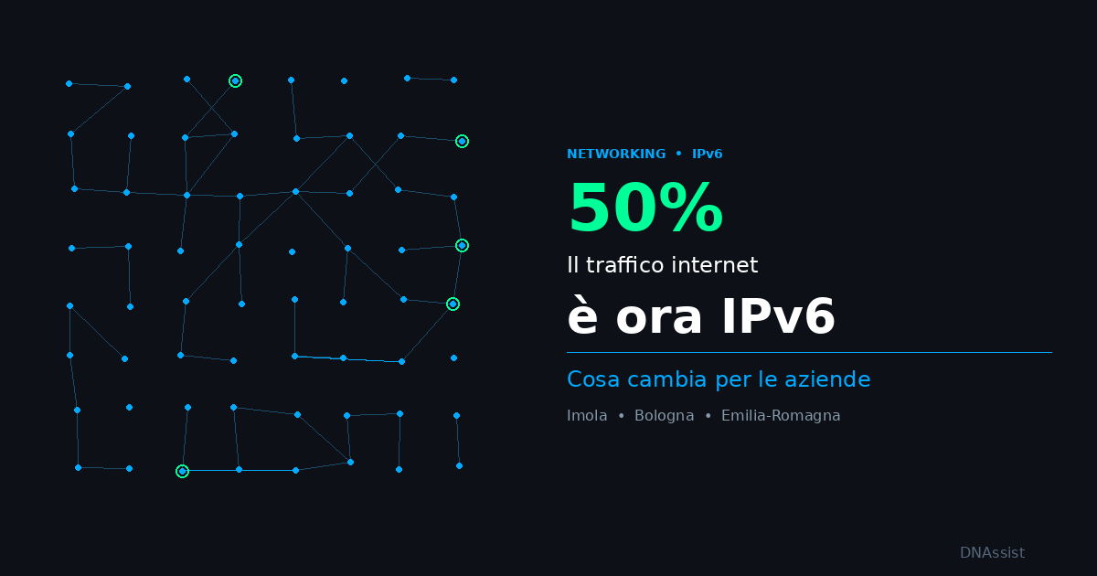 IPv6 ha superato il 50% del traffico internet globale. Cosa cambia per le aziende di Imola, Bologna ed Emilia-Romagna e come preparare la rete aziendale.